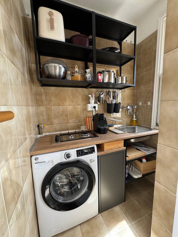 Sejour/cuisine, cuisine équipé avec plaque Gaz, lave linge, Nespresso, Airfryer, réfrigerateur/congelateur, Micro ondes... TV, canapé