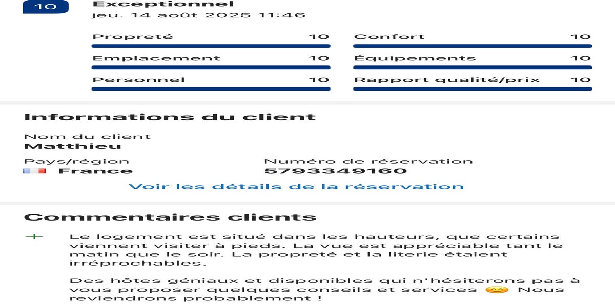 Vous pourrez lire ici quelques témoignages de clients ayant réservés directement sur notre site et de clients Airbnb et Booking.